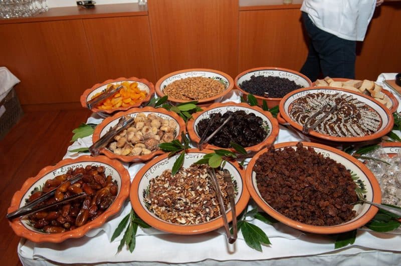 - οι ελιές με σισάμι, σταφίδες, μέλι και χυμό από νεράτζι
