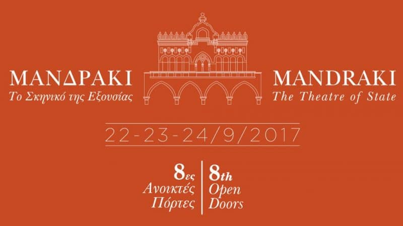Οι 8ες Ανοικτές Πόρτες έχουν ένα καινοτόμο θέμα. Με τον τίτλο “Μανδράκι – Το Σκηνικό της Εξουσίας” αναδεικνύονται τα επιβλητικά δημόσια κτίρια που κτίστηκαν τις δεκαετίες του ’20 και του ’30 γύρω από το αρχαίο λιμάνι του Μανδρακίου. Οι αυτοκρατορικές φιλοδοξίες και η ιδεολογία των Ιταλικών αρχών εκφράστηκαν μέσα από μια σειρά μεγαλοπρεπών δημοσίων κτιρίων που αποτέλεσαν “Το Σκηνικό της ΕξουσAίας” με σκοπό να εντυπωσιάσουν τον πληθυσμό, να αναδείξουν τα κατορθώματα της ιταλικής κουλτούρας και να σωπάσουν τις φωνές που αμφισβητούσαν τη νομιμότητα της Ιταλικής κυριαρχίας στα Δωδεκάνησα.